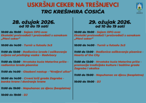 zbog loših vremenskih prilika otkazuje se manifestacija „Uskršnji ceker na Trešnjevci“ koja se trebala održati 28. i 29. ožujka 2026. na Trgu Krešimira Ćosića.